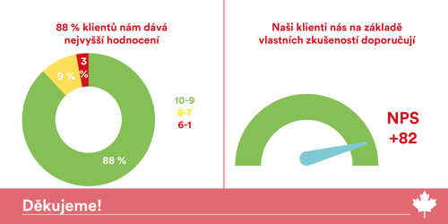 88 % klientů je s našimi službami naprosto spokojeno a dávají nám „desítku“ nebo „devítku“.