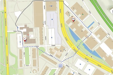 Exit Canadian Medical on the left and go straight at the intersection. Take the next left onto ulice Hráského. You will see the Polyclinic building on your right. Then take the first right.